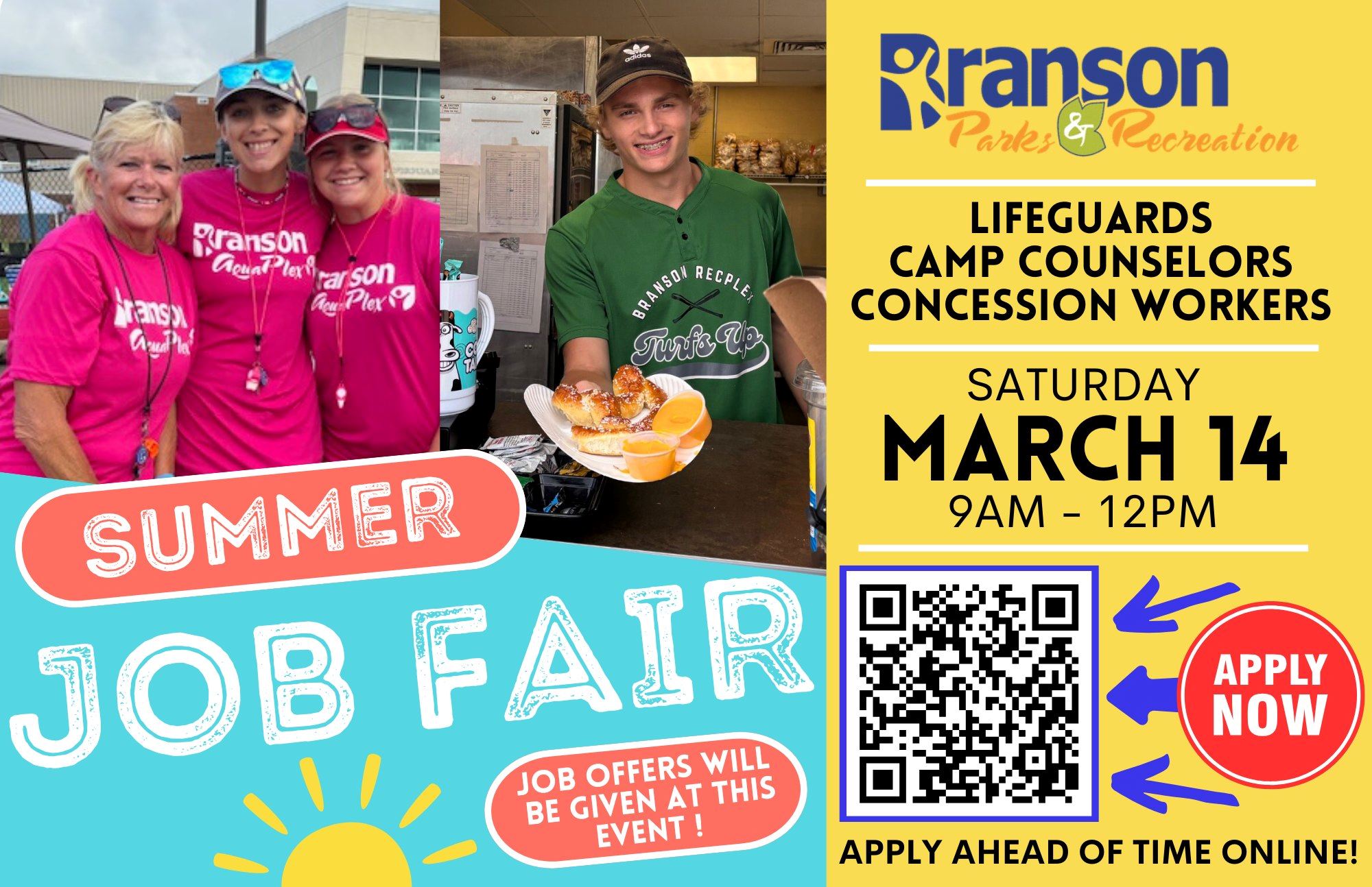 The Branson Parks & Recreation Summer Job Fair is the perfect opportunity to explore a variety of fun and flexible summer jobs, including: